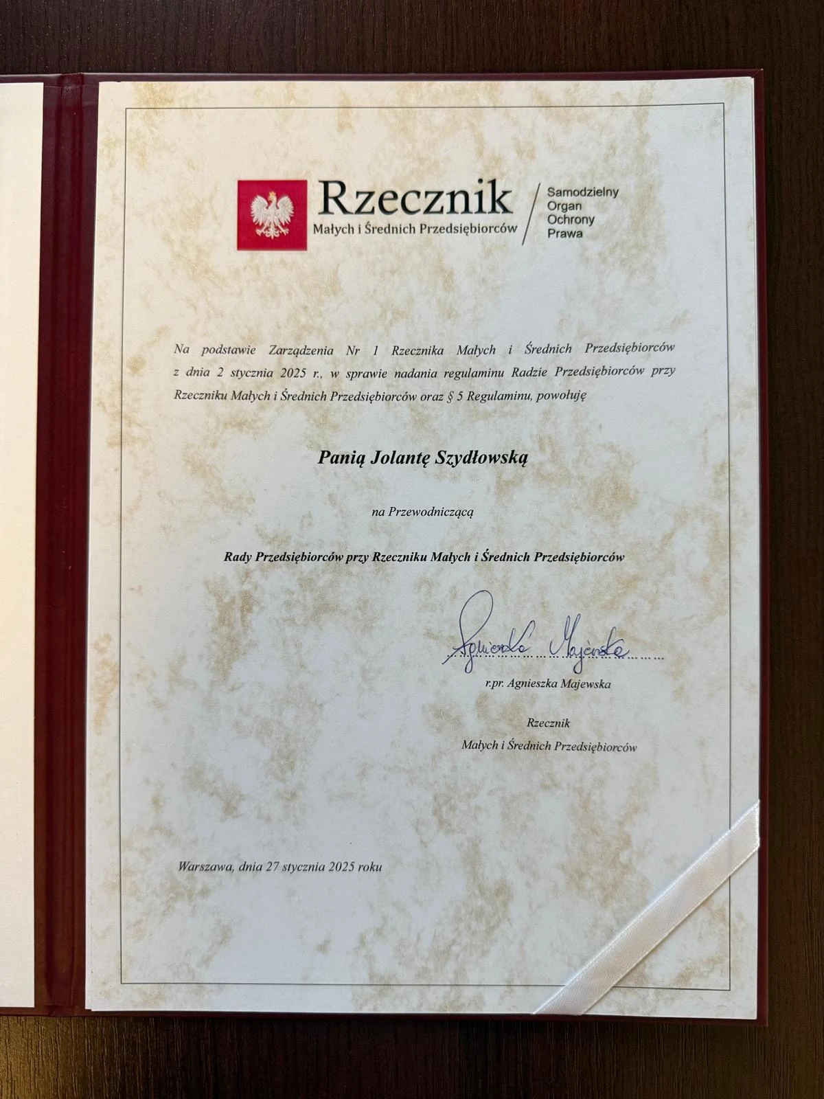 Jolanta Szydłowska została powołana przez Agnieszkę Majewską na Przewodniczącą Rady Przedsiębiorców przy Rzeczniku Małych i Średnich Przedsiębiorców. To ogromne wyróżnienie, które podkreśla jej wieloletnie zaangażowanie w rozwój przedsiębiorczości w Polsce.